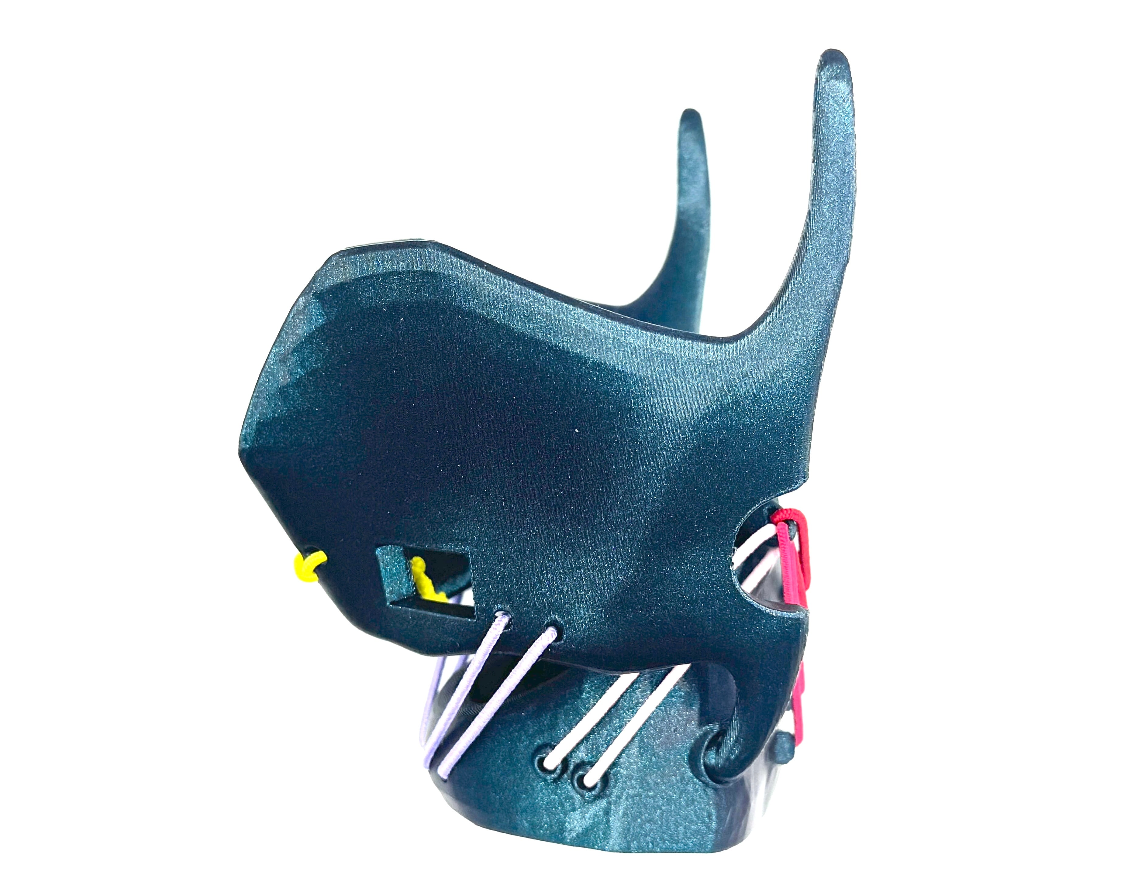 3Dプリンターで作製した「喉頭3Dモデル ver1.0」。各パーツをゴムで連結し、喉頭(声帯)の動きを模擬的に再現できる学習用モデルです。授業・研修・自己学習など、構造理解を深めたい場面に役立ちます。